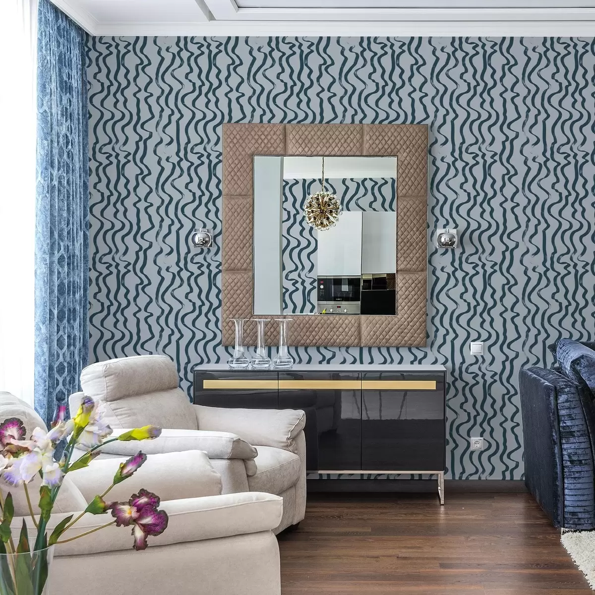 Carta da parati Linee ondulate scure su sfondo blu Nr. a01168v1