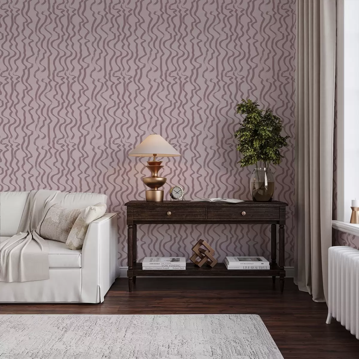 Carta da parati Linee ondulate rosa su sfondo chiaro Nr. a01168v3