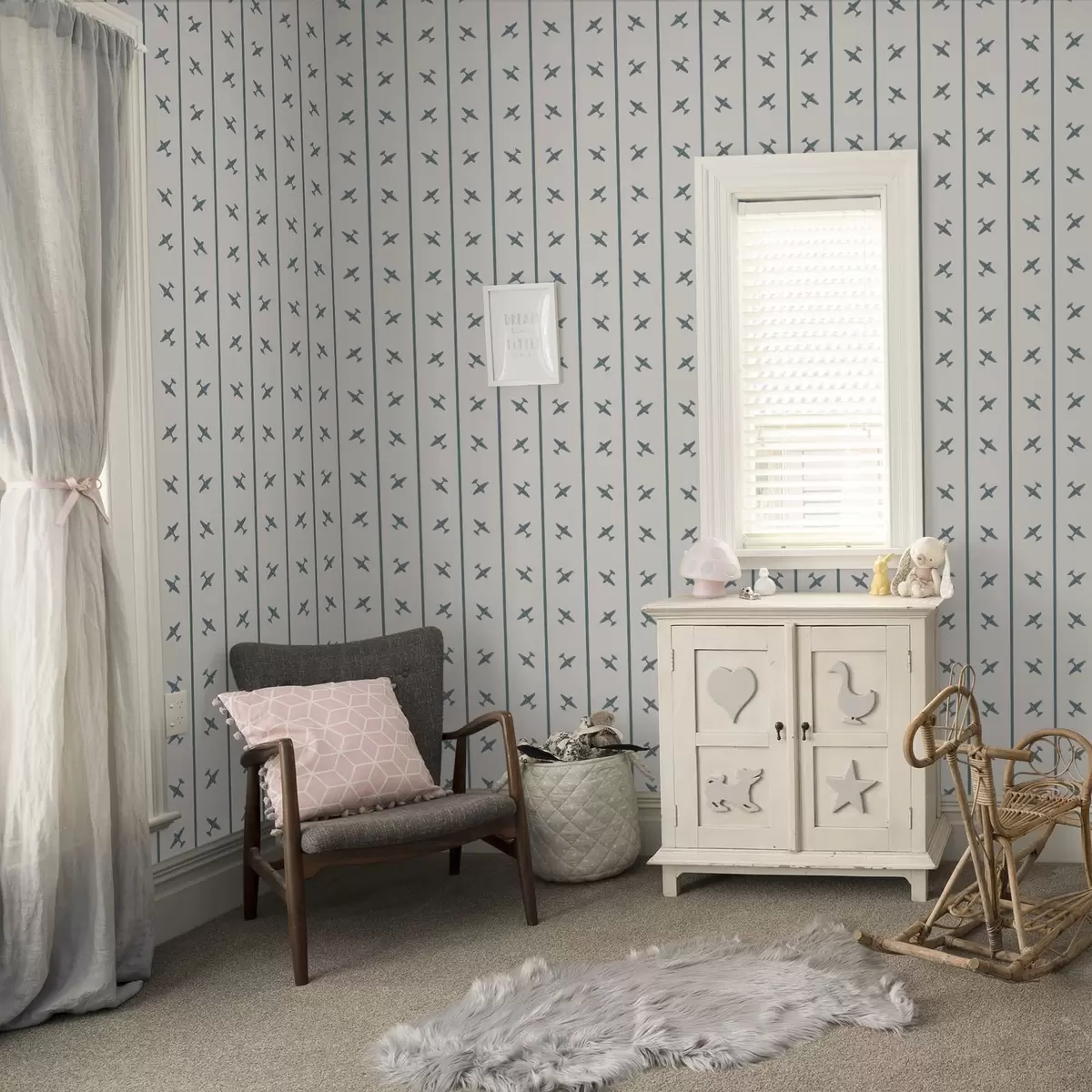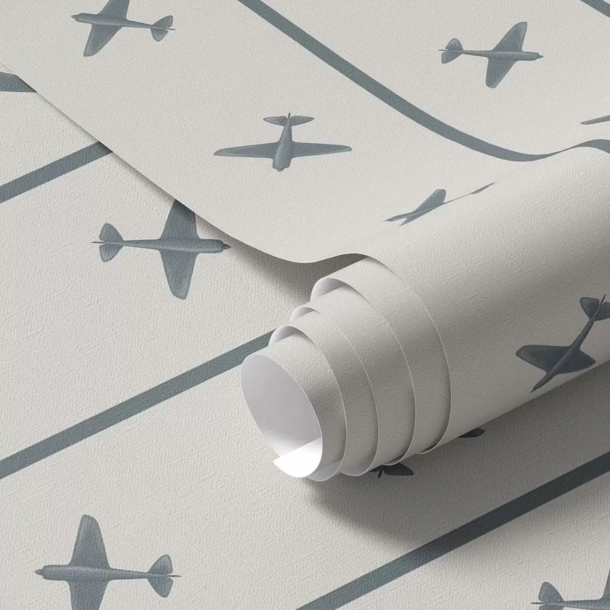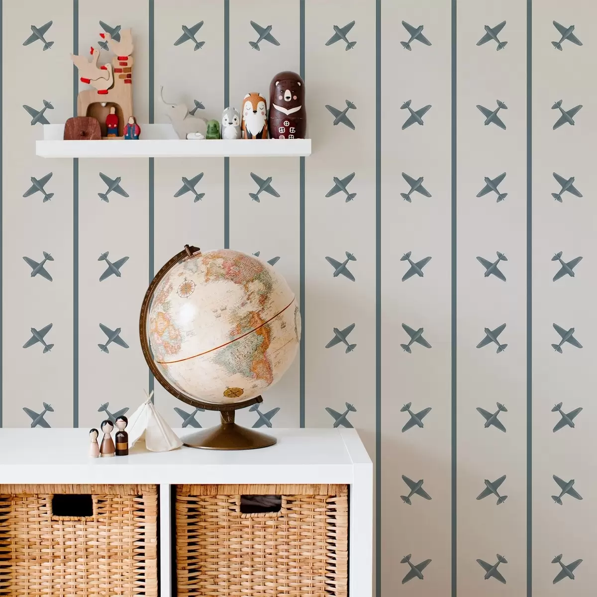 Carta da parati Aerei con motivo a strisce e dettagli blu Nr. a01169