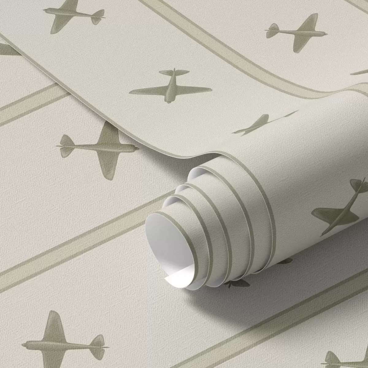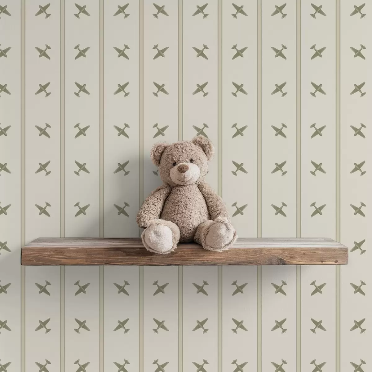 Carta da parati Aerei con motivo a strisce nei toni dell'oliva Nr. a01170v2