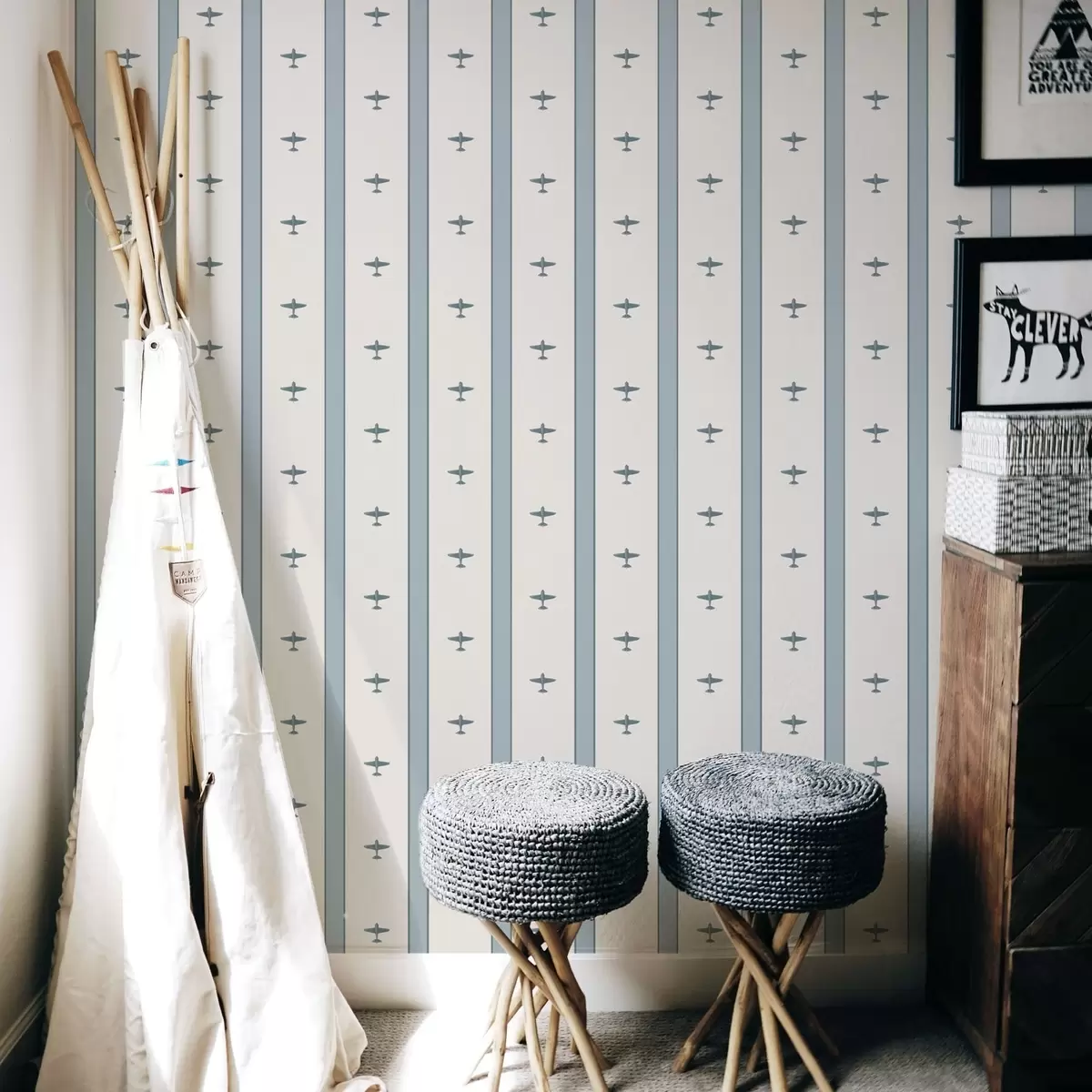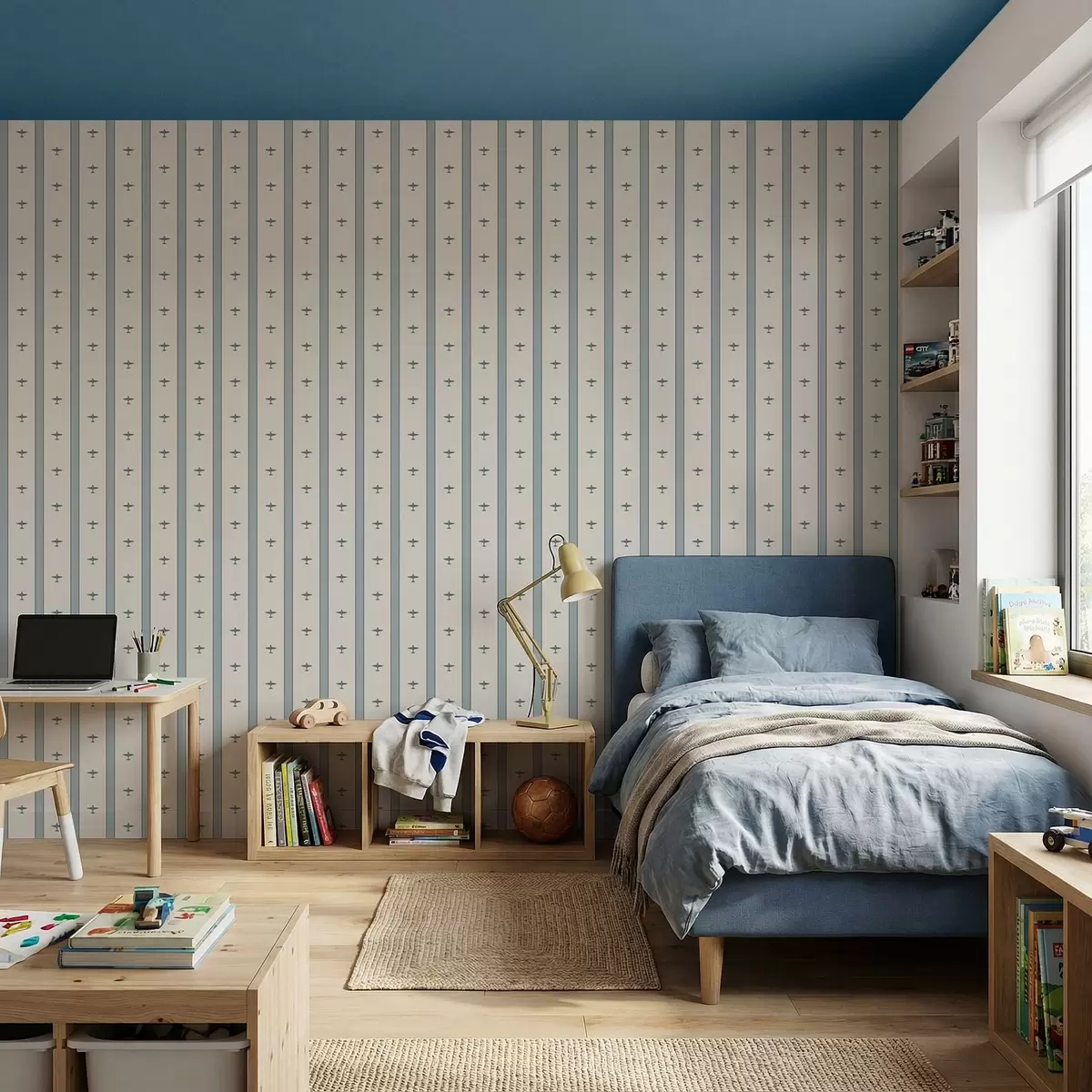 Carta da parati Piccoli aeroplani a strisce su sfondo blu Nr. a01171