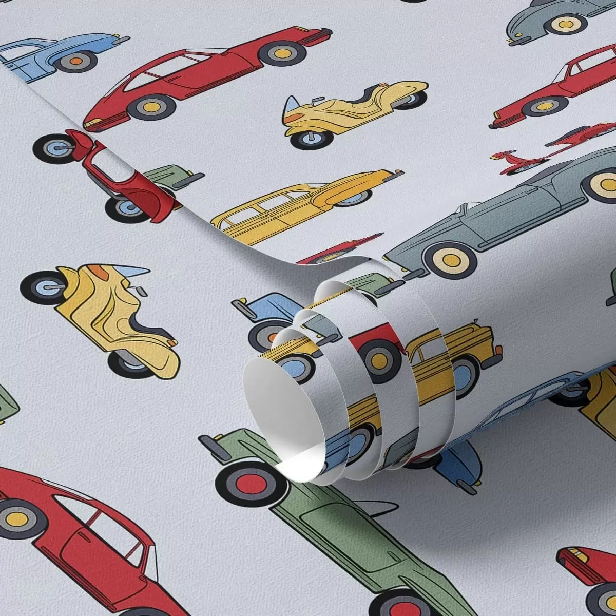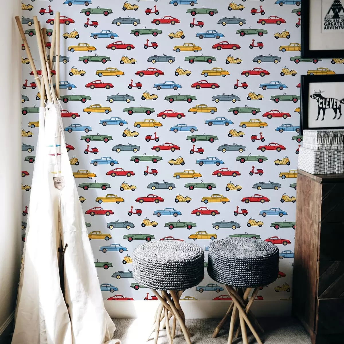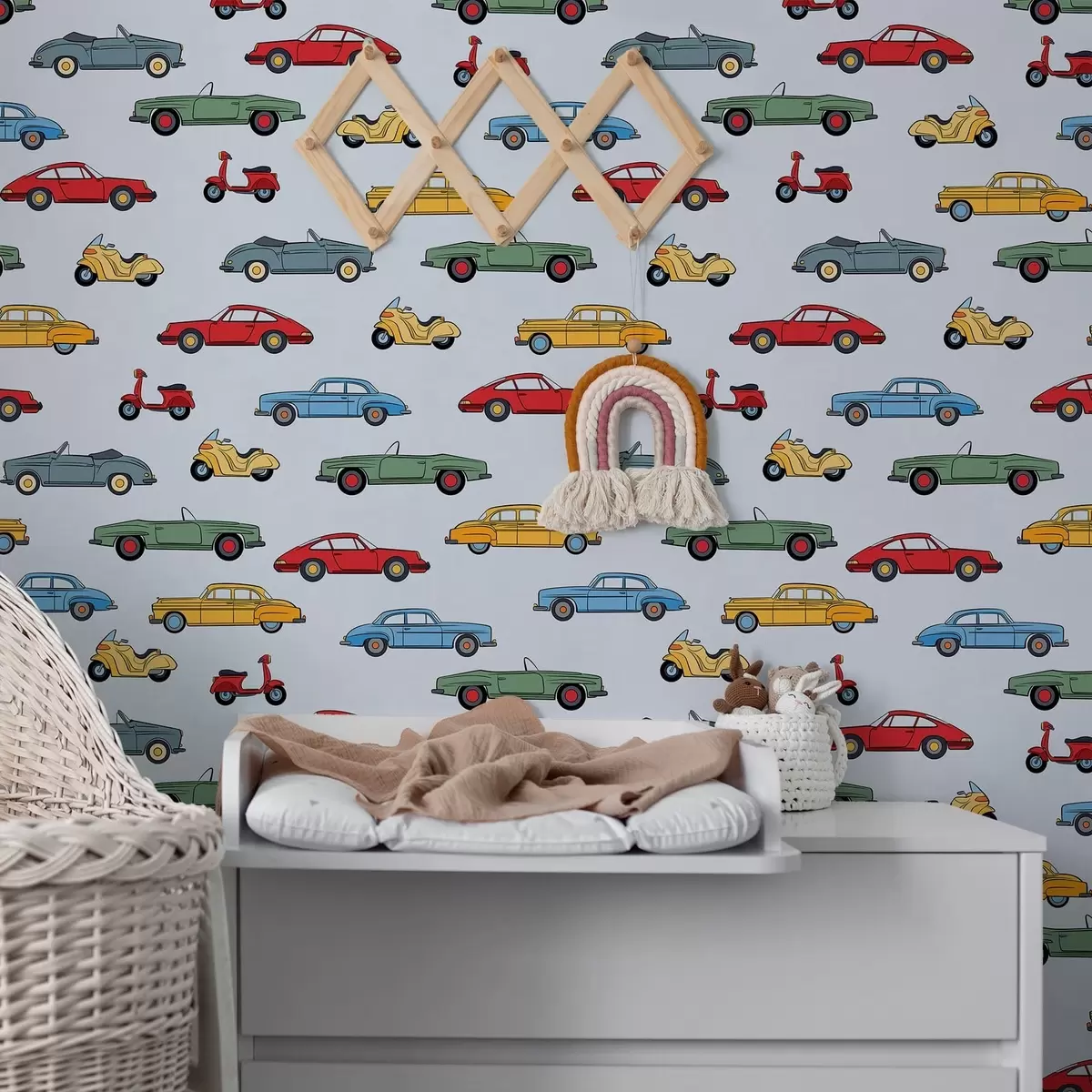 Carta da parati Auto e scooter d'epoca su sfondo blu Nr. a01172v2