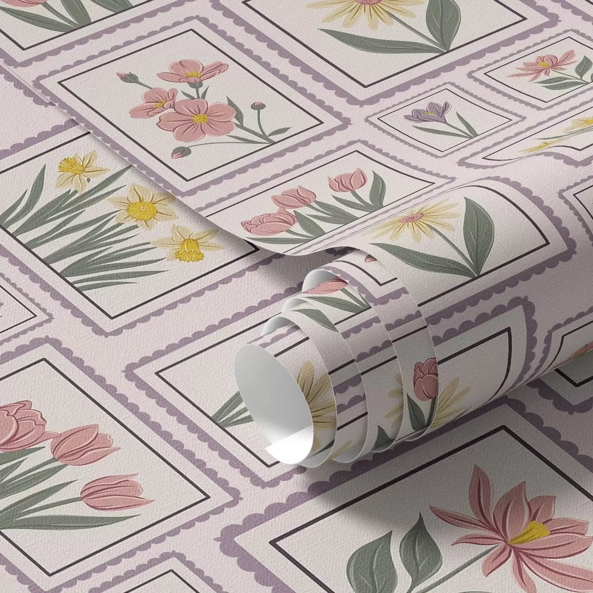 Carta da parati Illustrazioni floreali incorniciate nei toni del lilla Nr. a01173v2