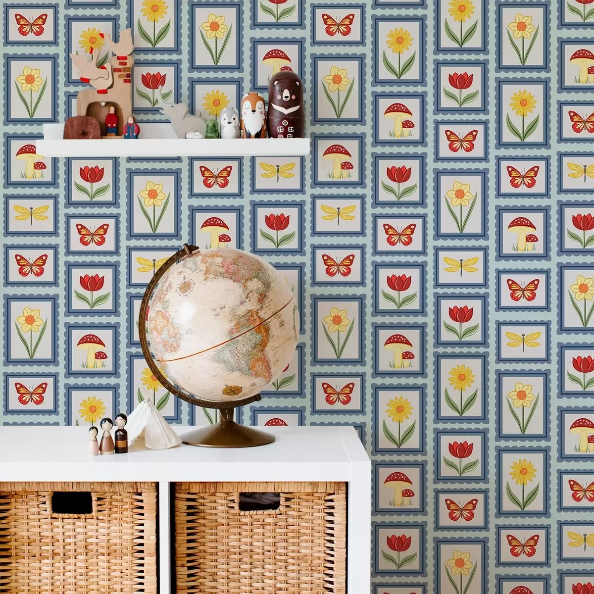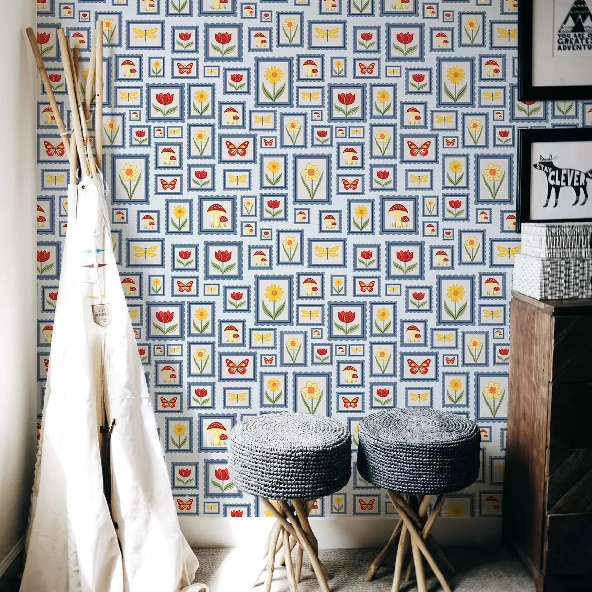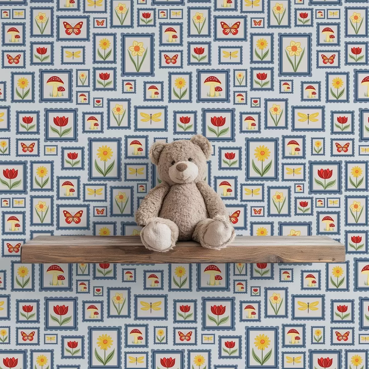 Carta da parati Illustrazioni incorniciate su sfondo blu Nr. a01176