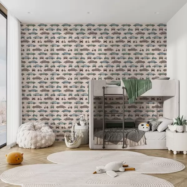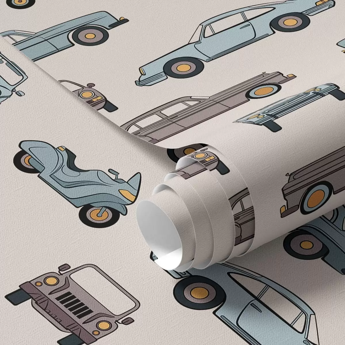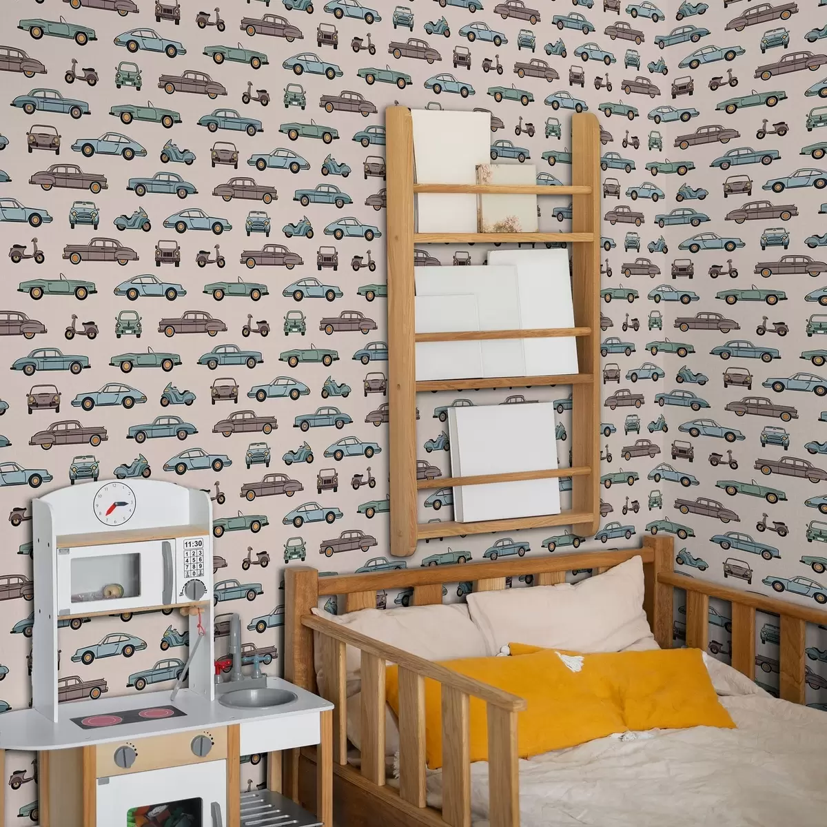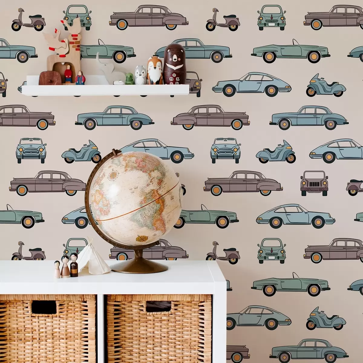 Carta da parati Auto e scooter d'epoca su sfondo beige Nr. a01178v1