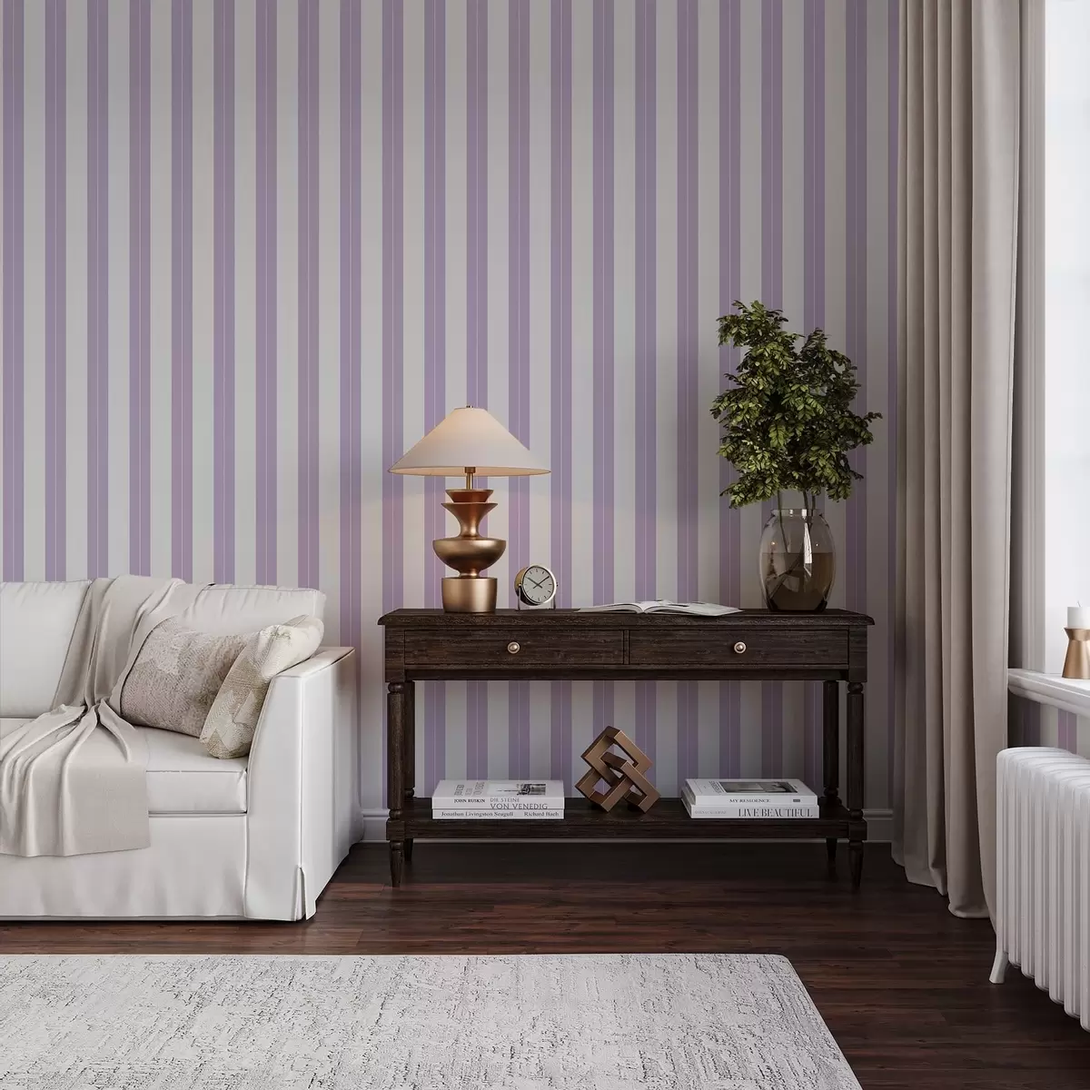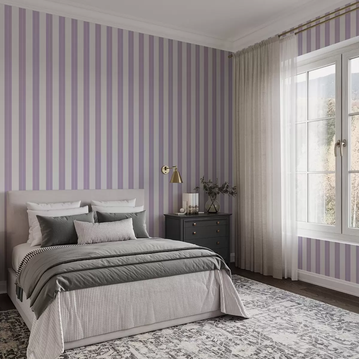 Carta da parati Righe verticali viola chiaro e grigie Nr. a01181v3