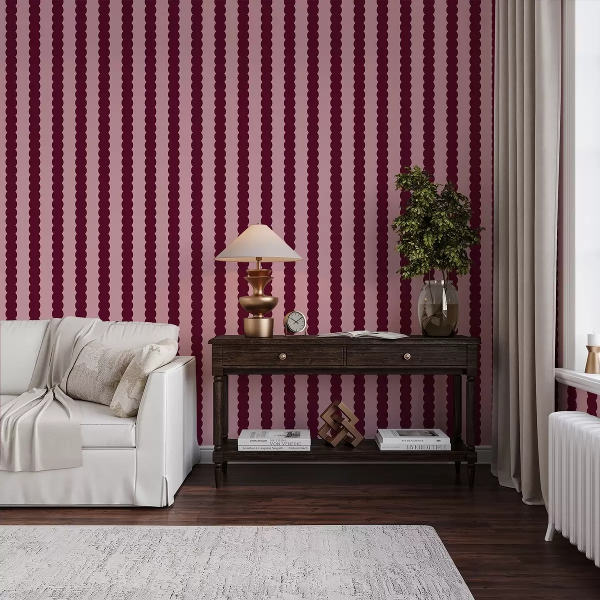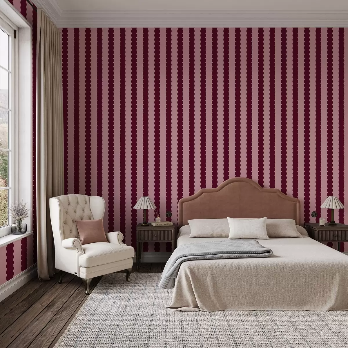 Carta da parati Righe ondulate color bordeaux in stile minimalista Nr. a01182v5