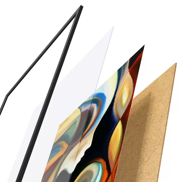 Il poster è composto da cornice, plexiglass, immagine stampata e supporto in truciolato. Il poster può essere immediatamente appeso alla parete grazie ai supporti sul retro.