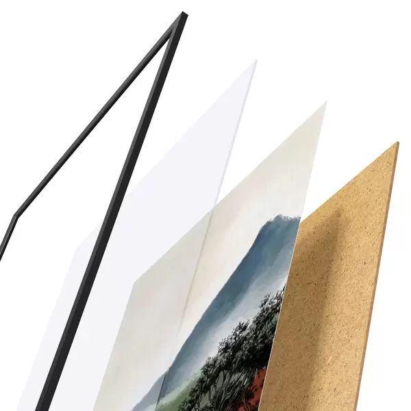 Il poster è composto da cornice, plexiglass, immagine stampata e supporto in truciolato. Il poster può essere immediatamente appeso alla parete grazie ai supporti sul retro.