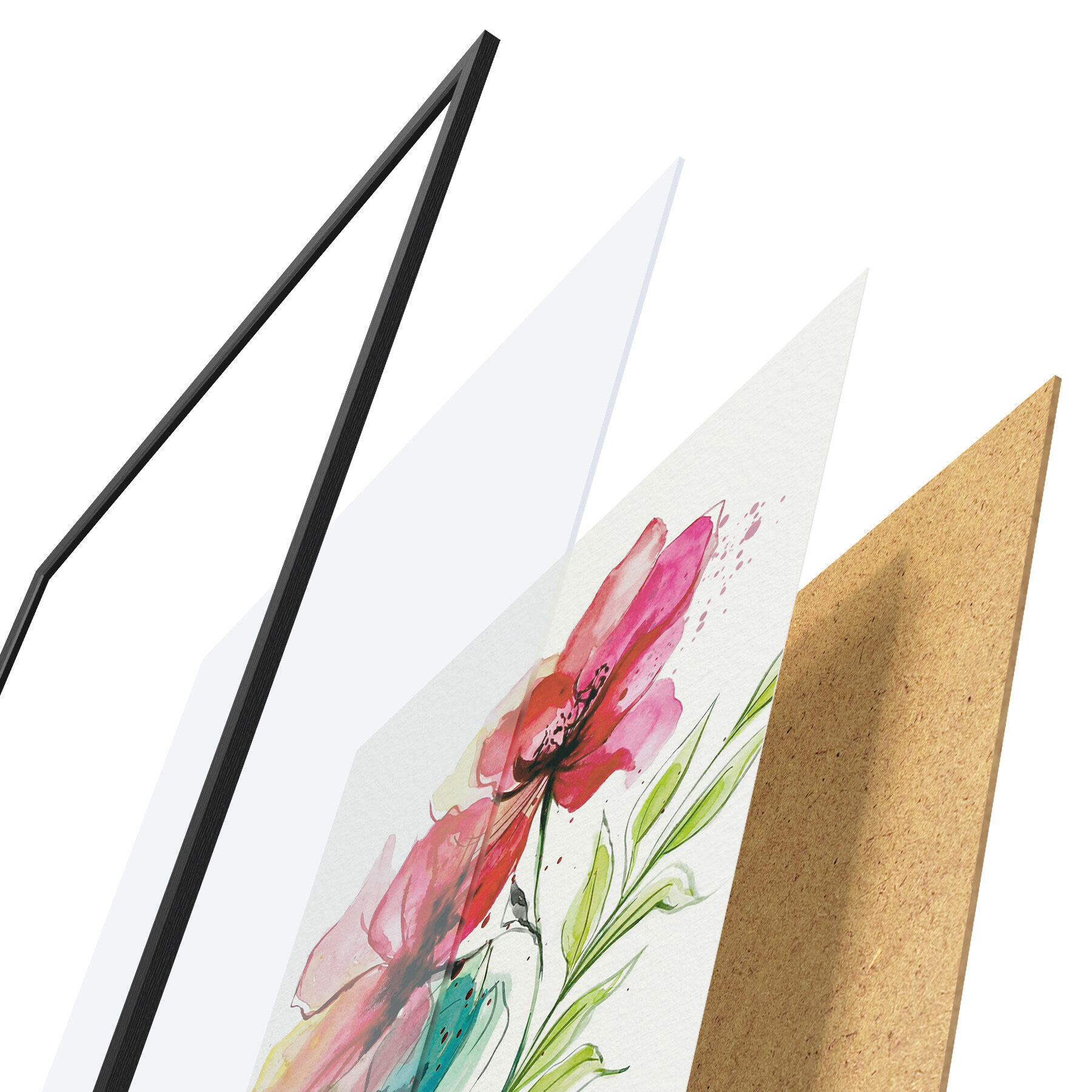 Il poster è composto da cornice, plexiglass, immagine stampata e supporto in truciolato. Il poster può essere immediatamente appeso alla parete grazie ai supporti sul retro.