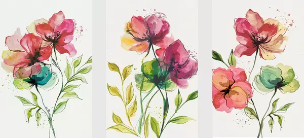 Poster Delicati fiori acquerellati con spruzzi di colore Nr d00340