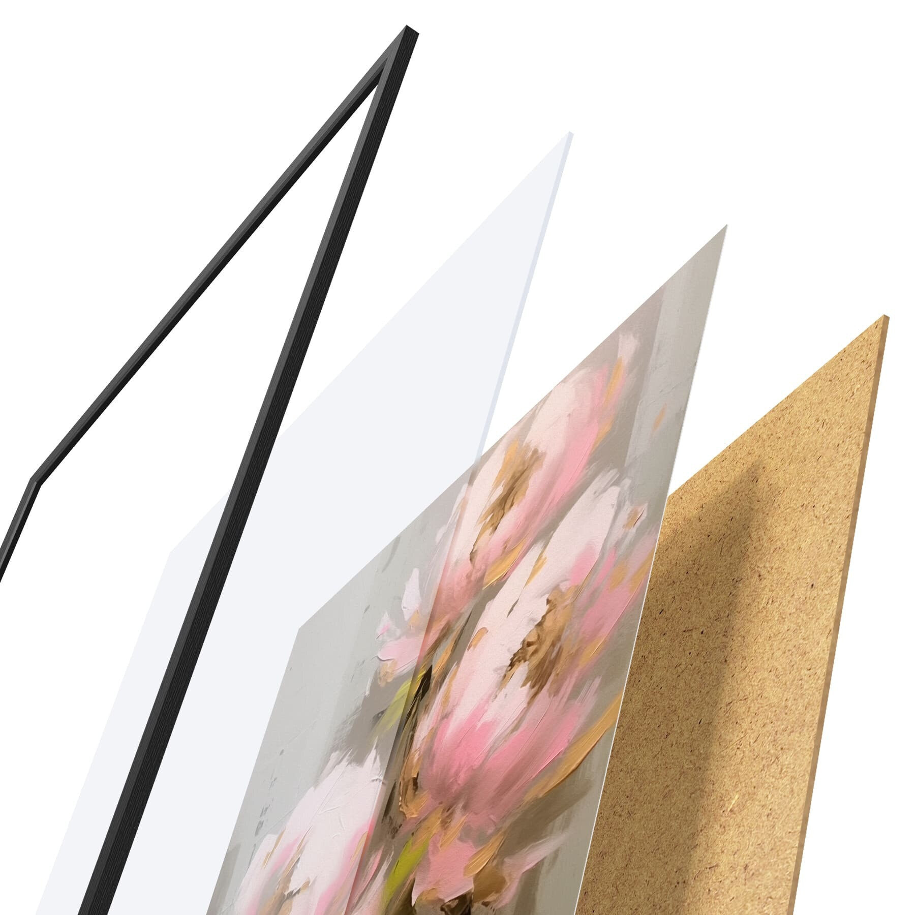 Il poster è composto da cornice, plexiglass, immagine stampata e supporto in truciolato. Il poster può essere immediatamente appeso alla parete grazie ai supporti sul retro.