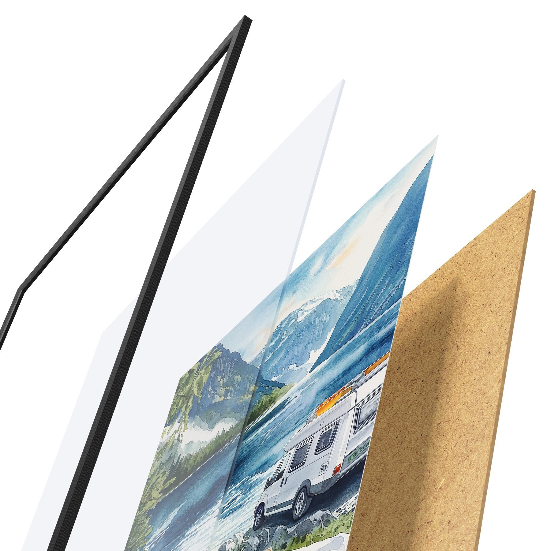 Il poster è composto da cornice, plexiglass, immagine stampata e supporto in truciolato. Il poster può essere immediatamente appeso alla parete grazie ai supporti sul retro.