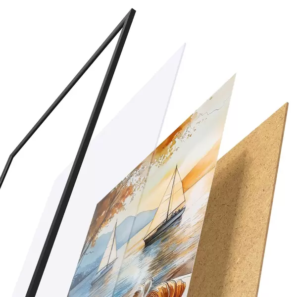 Il poster è composto da cornice, plexiglass, immagine stampata e supporto in truciolato. Il poster può essere immediatamente appeso alla parete grazie ai supporti sul retro.