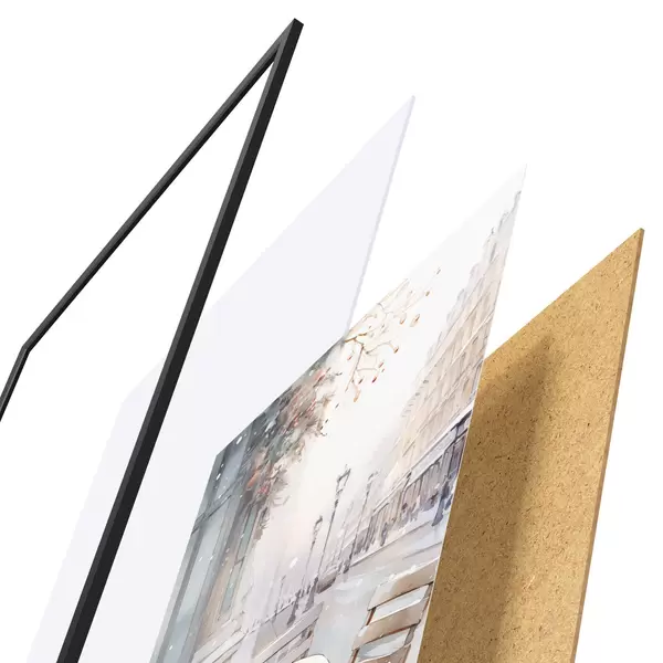 Il poster è composto da cornice, plexiglass, immagine stampata e supporto in truciolato. Il poster può essere immediatamente appeso alla parete grazie ai supporti sul retro.