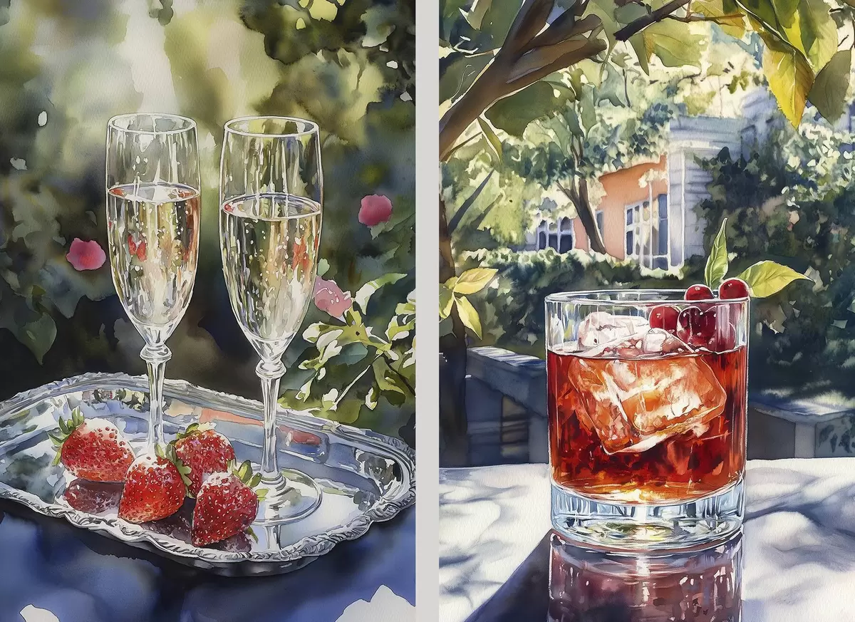 Poster Deliziosi cocktail con frutti di bosco, stile acquerello, estetica, natura estiva Nr d00415