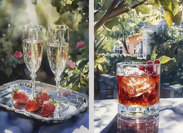 Poster Deliziosi cocktail con frutti di bosco, stile acquerello, estetica, natura estiva Nr d00415