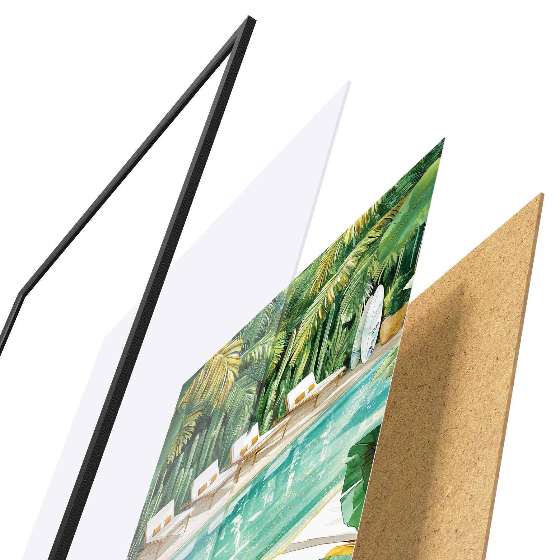 Il poster è composto da cornice, plexiglass, immagine stampata e supporto in truciolato. Il poster può essere immediatamente appeso alla parete grazie ai supporti sul retro.