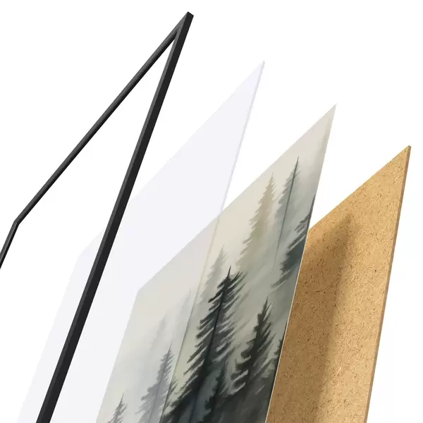 Il poster è composto da cornice, plexiglass, immagine stampata e supporto in truciolato. Il poster può essere immediatamente appeso alla parete grazie ai supporti sul retro.