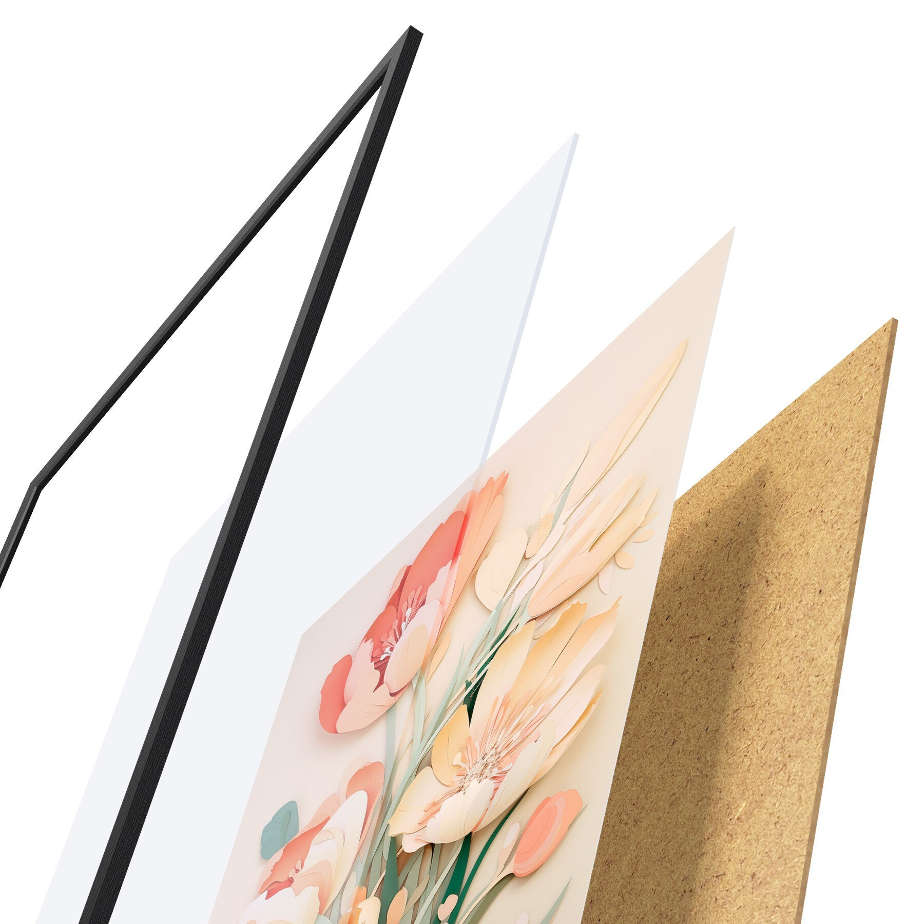 Il poster è composto da cornice, plexiglass, immagine stampata e supporto in truciolato. Il poster può essere immediatamente appeso alla parete grazie ai supporti sul retro.
