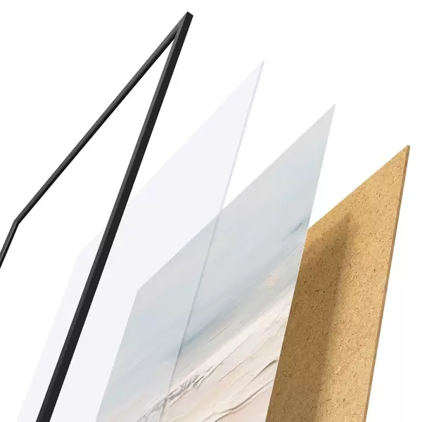 Il poster è composto da cornice, plexiglass, immagine stampata e supporto in truciolato. Il poster può essere immediatamente appeso alla parete grazie ai supporti sul retro.