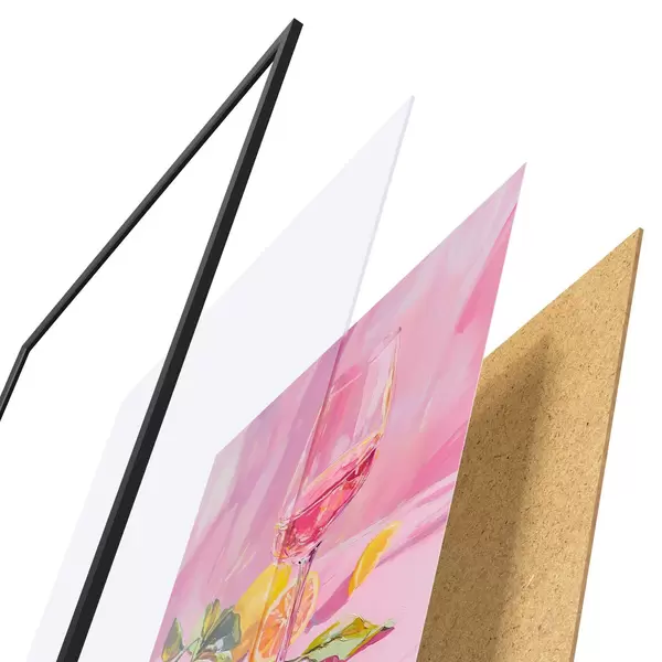 Il poster è composto da cornice, plexiglass, immagine stampata e supporto in truciolato. Il poster può essere immediatamente appeso alla parete grazie ai supporti sul retro.