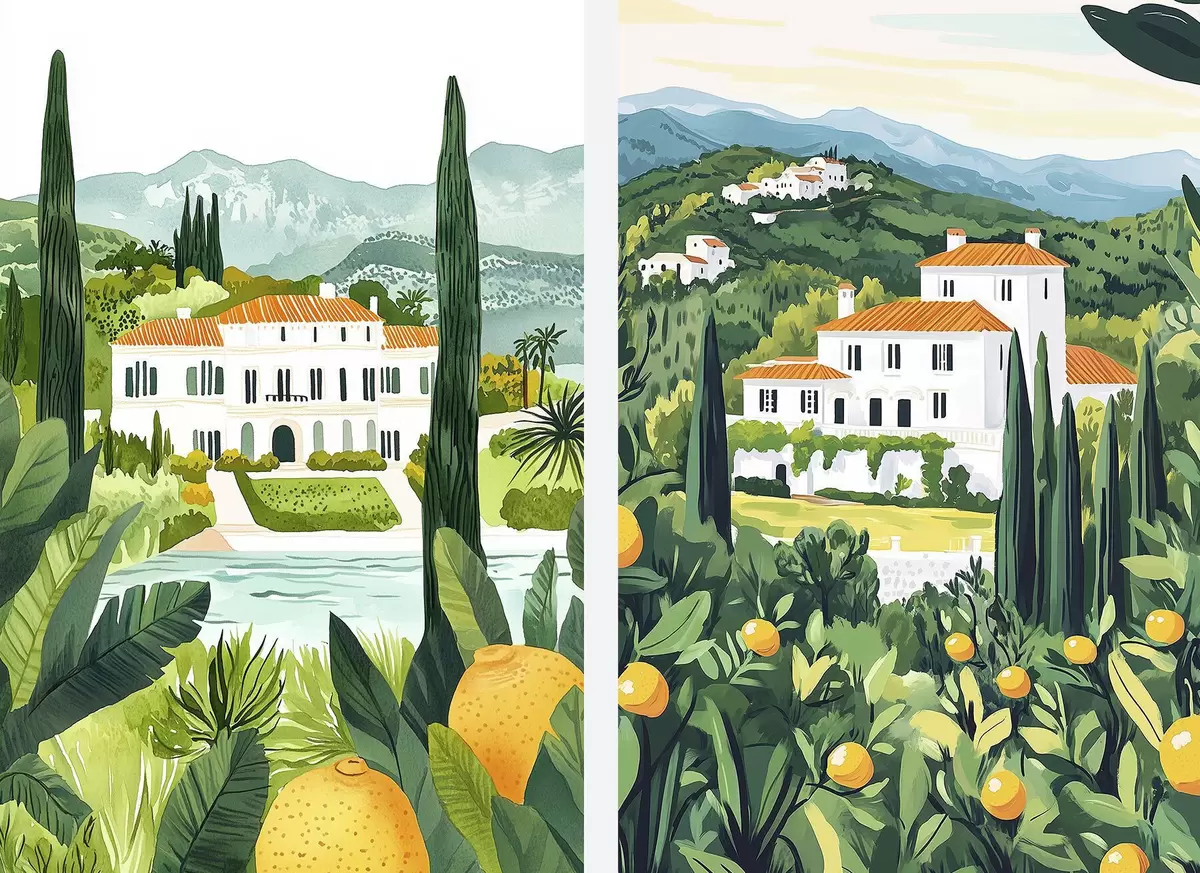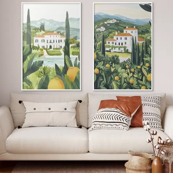 Poster Paesaggi mediterranei con alberi e case, costa del mare, Spagna Nr d00450