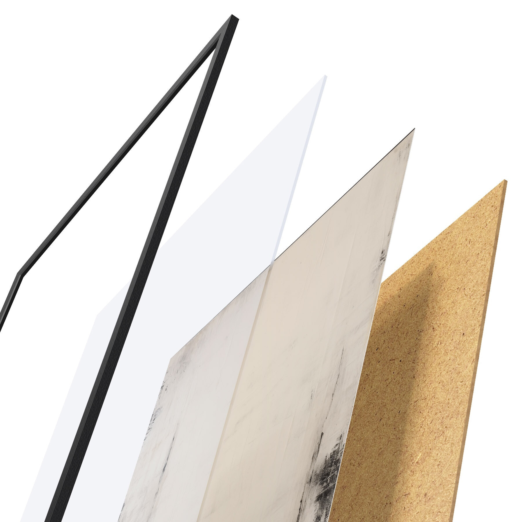 Il poster è composto da cornice, plexiglass, immagine stampata e supporto in truciolato. Il poster può essere immediatamente appeso alla parete grazie ai supporti sul retro.