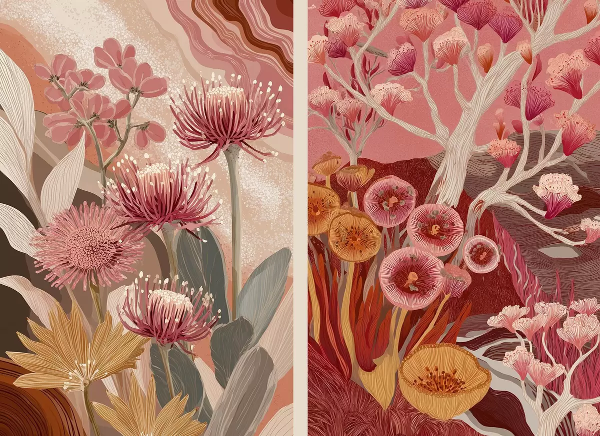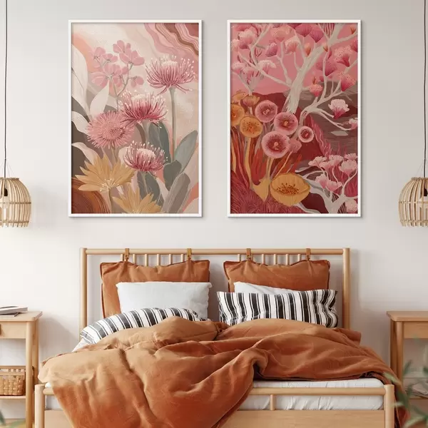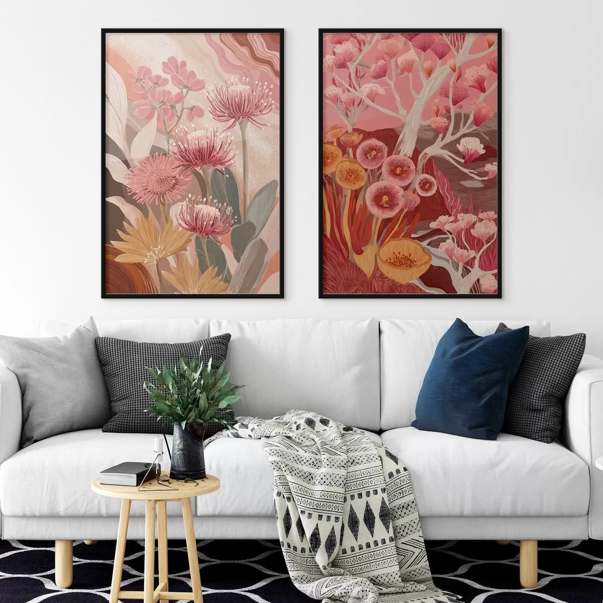 Poster Fiori in stile boho, disegno dettagliato, colori bordeaux d00476