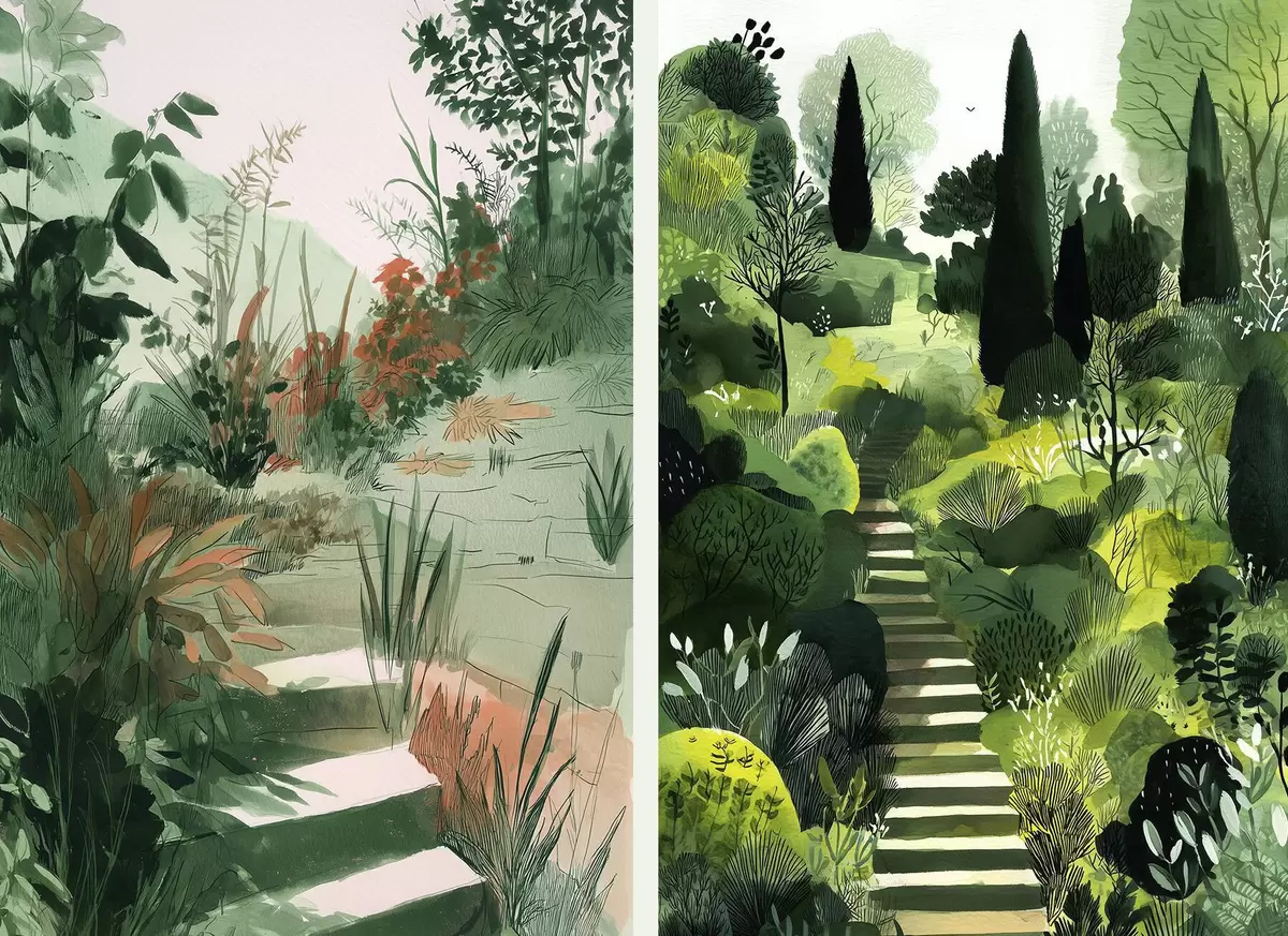 Poster Giardino verde orientale con cespugli e alberi Nr d00478
