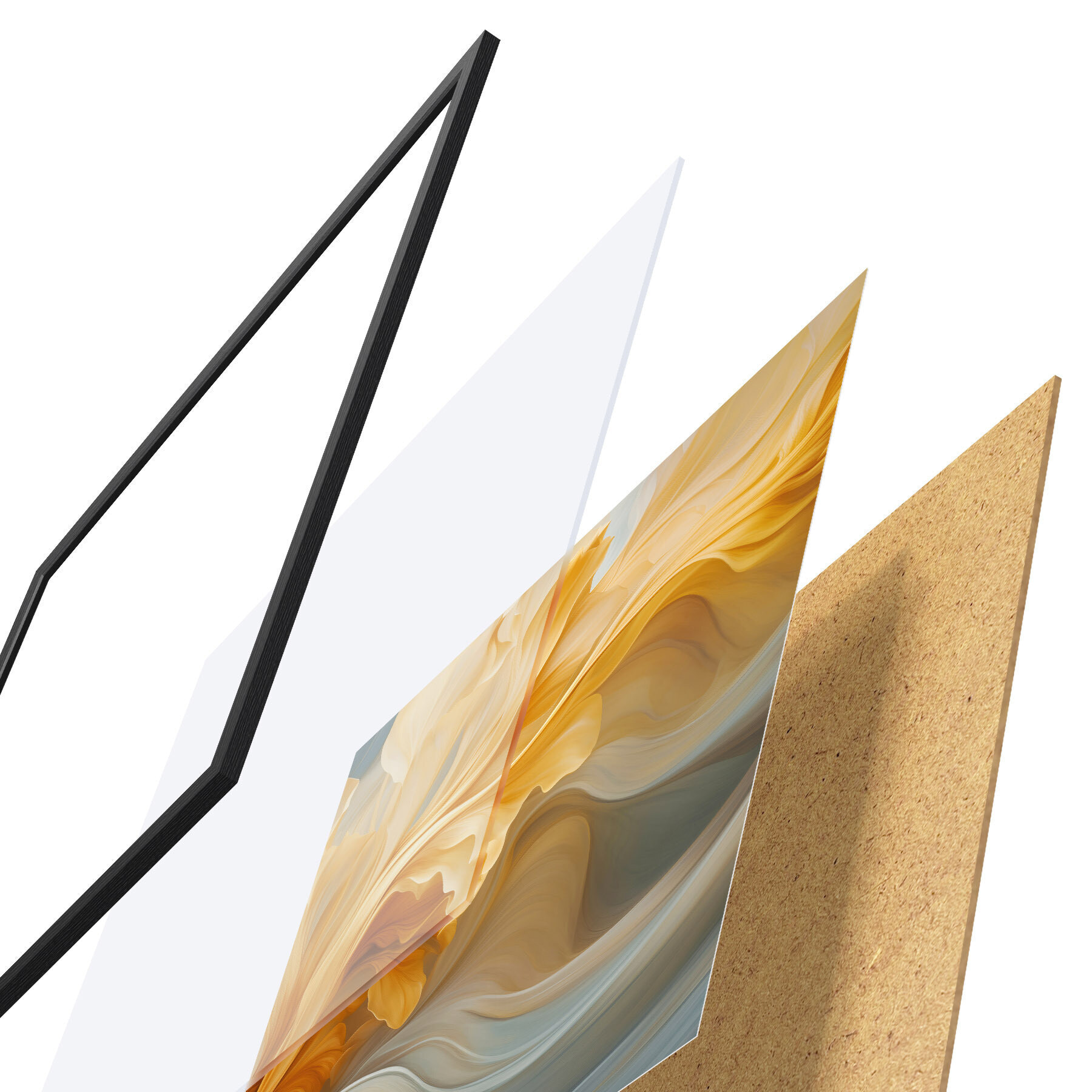Il poster è composto da cornice, plexiglass, immagine stampata e supporto in truciolato. Il poster può essere immediatamente appeso alla parete grazie ai supporti sul retro.