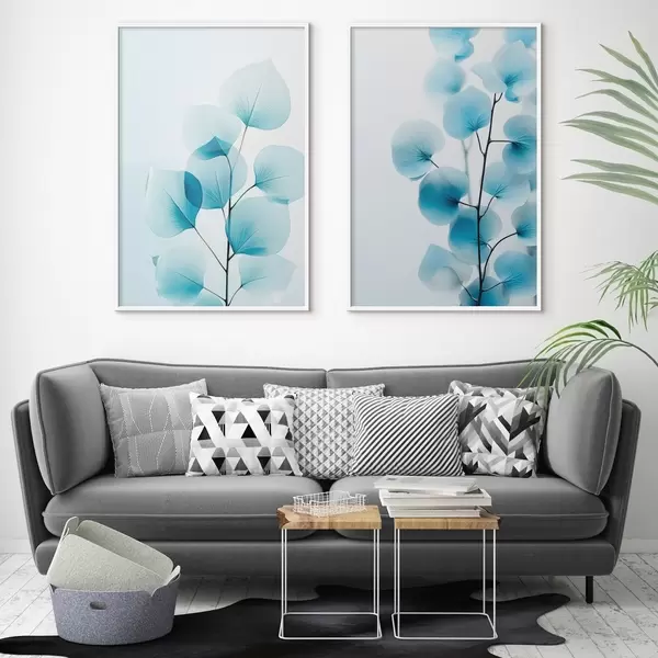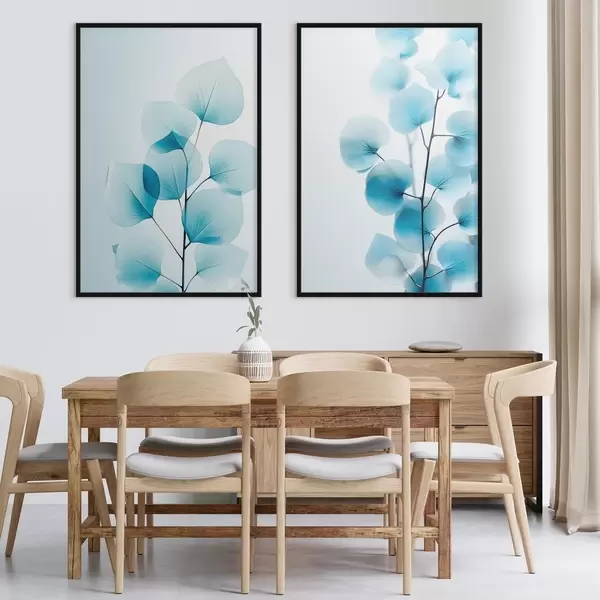 Poster Ramo con foglie blu traslucide, con delicate venature visibili, composizione leggera e tranquilla, estetica minimalista Nr d00522
