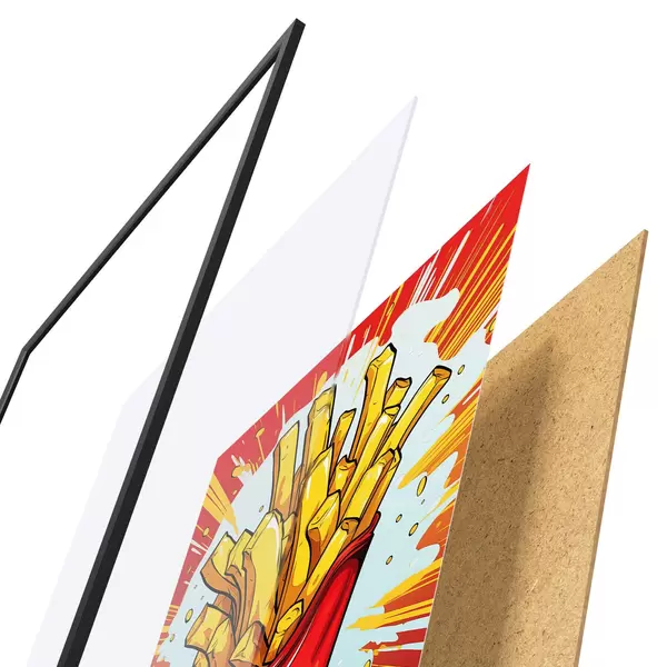 Il poster è composto da cornice, plexiglass, immagine stampata e supporto in truciolato. Il poster può essere immediatamente appeso alla parete grazie ai supporti sul retro.