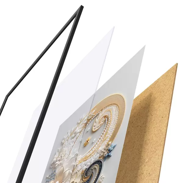 Il poster è composto da cornice, plexiglass, immagine stampata e supporto in truciolato. Il poster può essere immediatamente appeso alla parete grazie ai supporti sul retro.