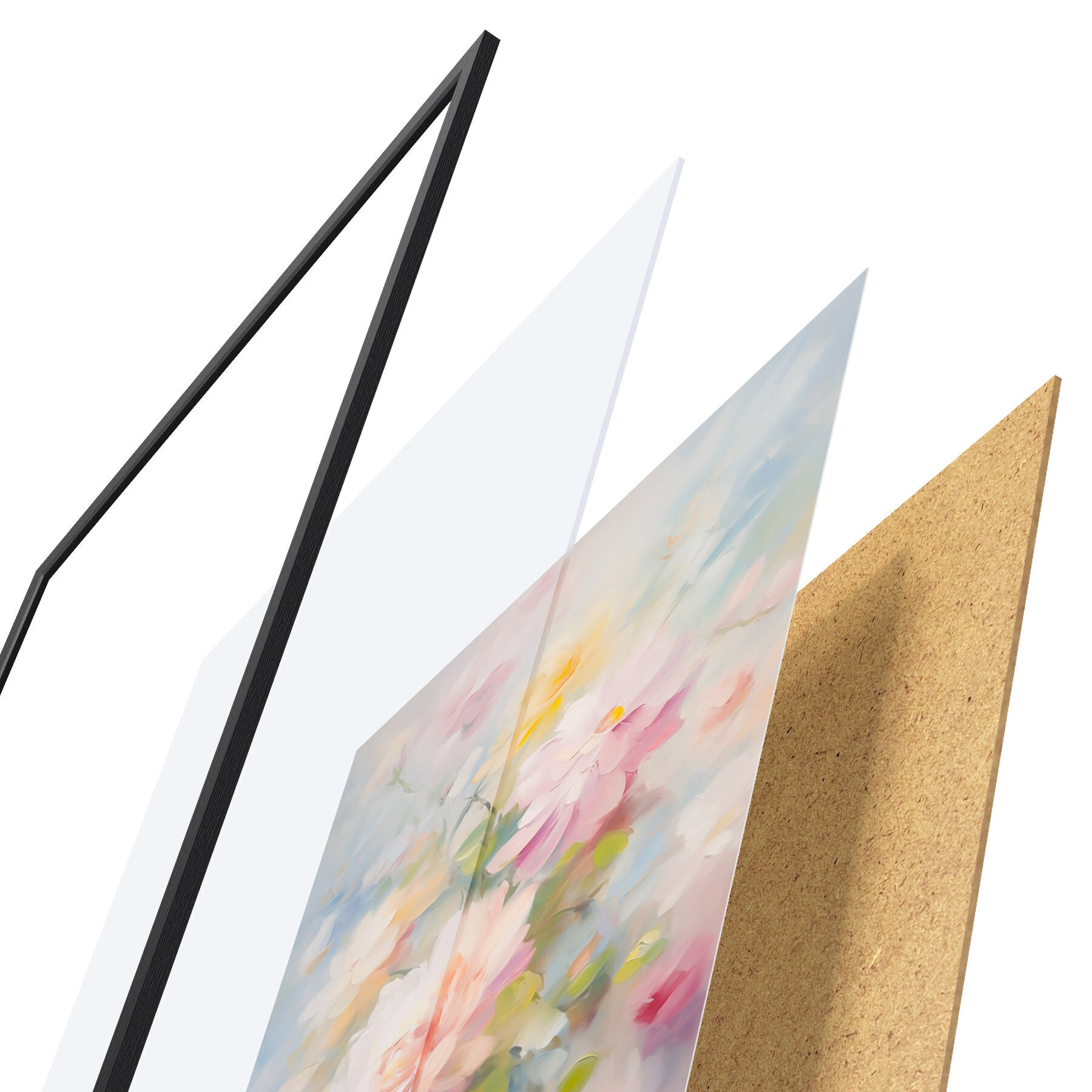 Il poster è composto da cornice, plexiglass, immagine stampata e supporto in truciolato. Il poster può essere immediatamente appeso alla parete grazie ai supporti sul retro.