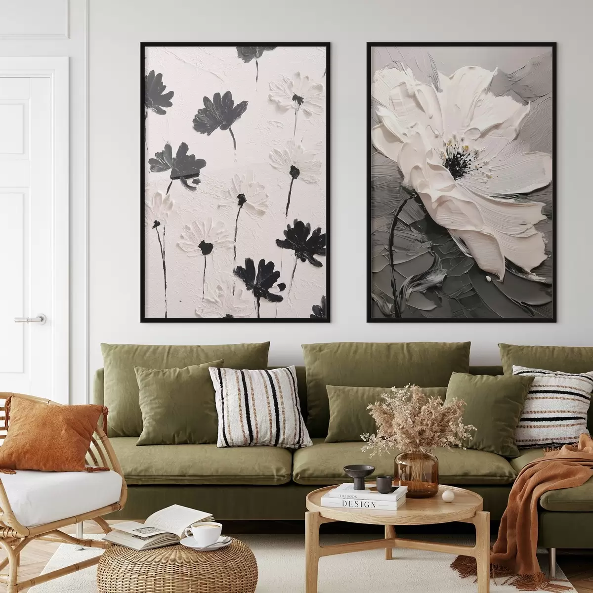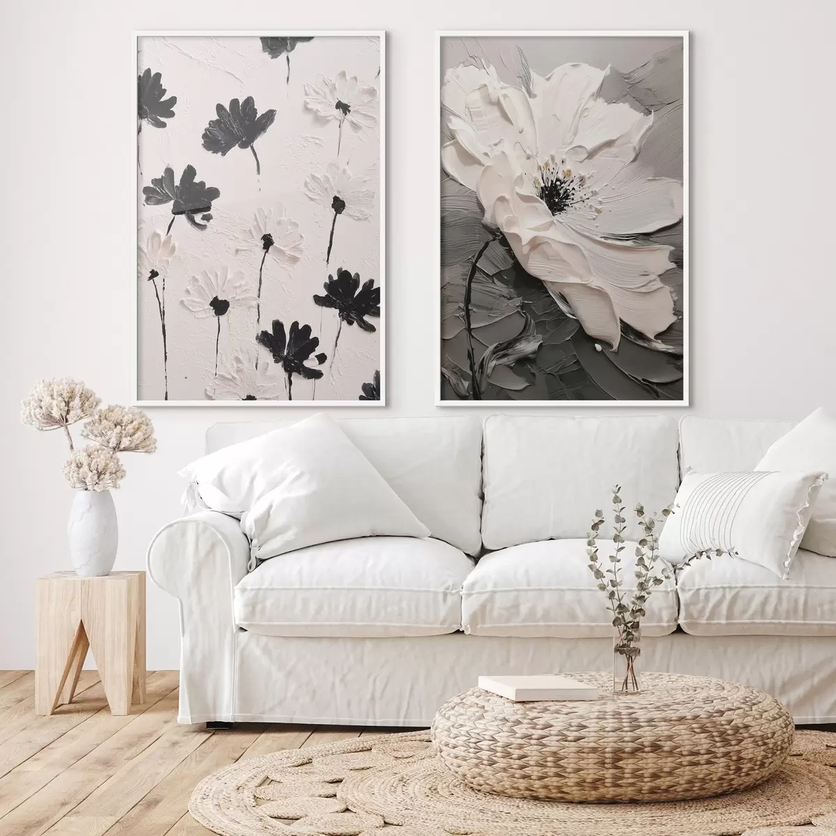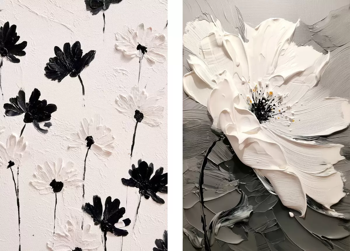 Poster Dittico con fiori bianchi e neri in stile moderno d00571