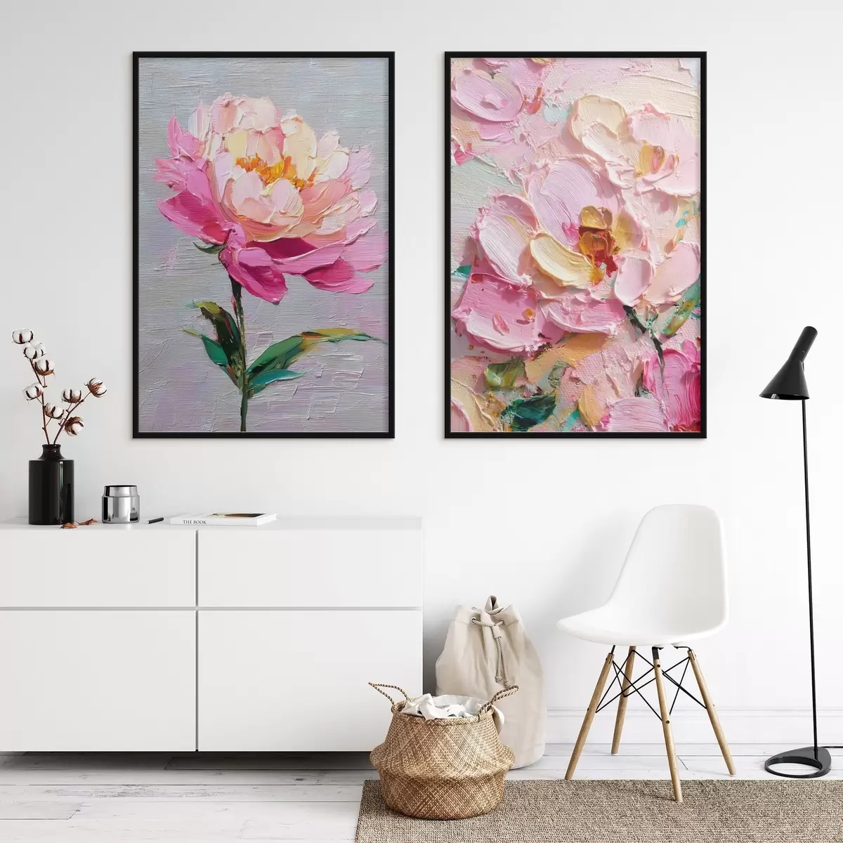 Poster Arte moderna con fiori rosa in tecnica volumetrica Nr d00572