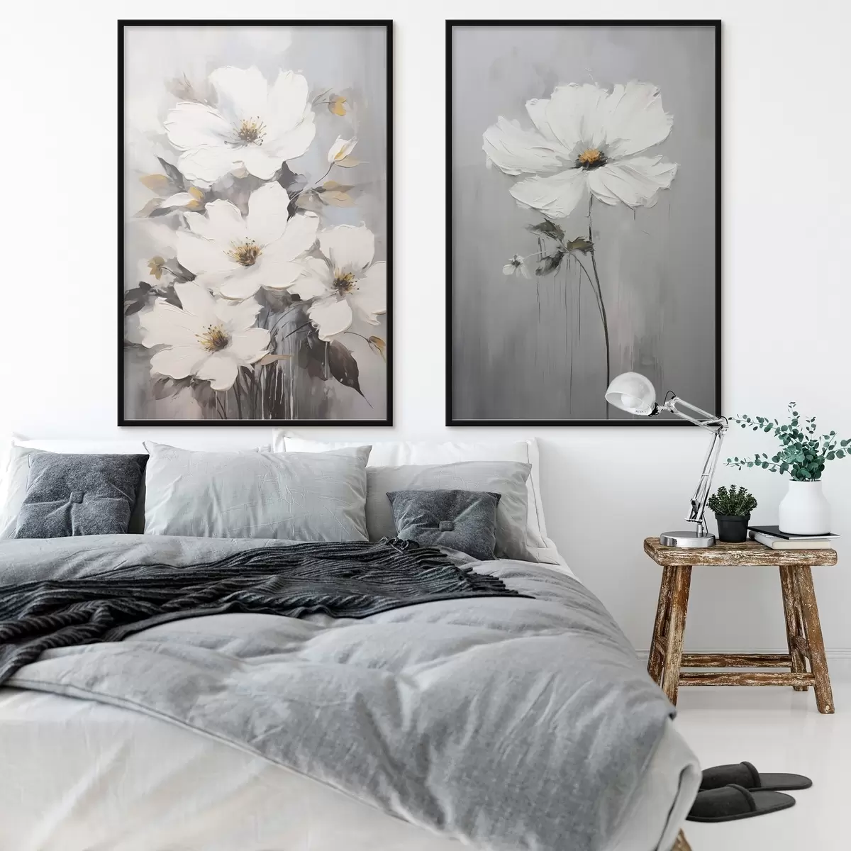 Poster Composizione artistica con fiori bianchi e superficie strutturata in stile minimalista Nr d00574