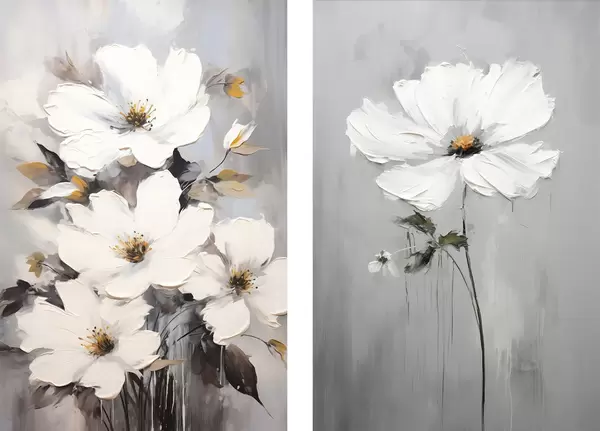 Poster Composizione artistica con fiori bianchi e superficie strutturata in stile minimalista Nr d00574