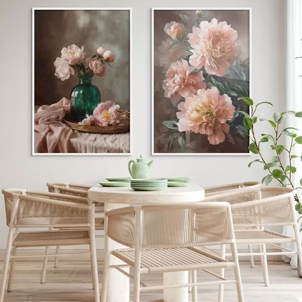 Poster Composizione abbinata con peonie rosa in vaso e su tela Nr d00578