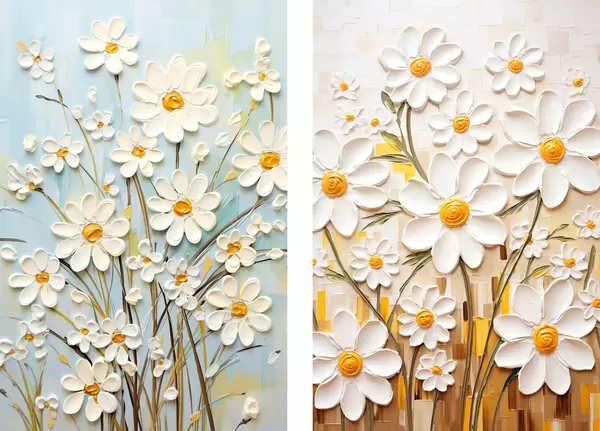 Poster Fiori di sole: duetto artistico con margherite volumetriche e accenti gialli Nr d00580