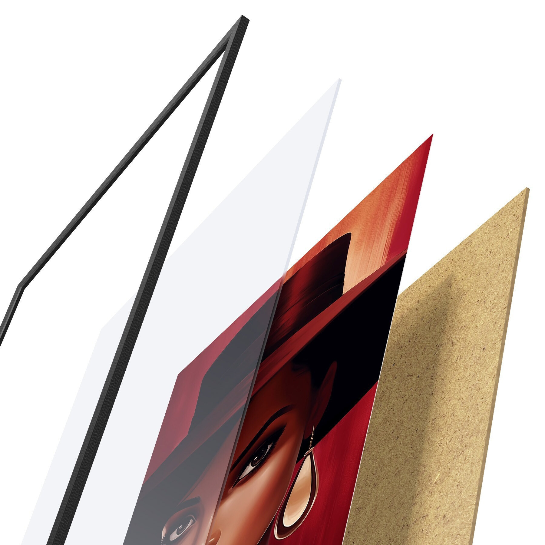 Il poster è composto da cornice, plexiglass, immagine stampata e supporto in truciolato. Il poster può essere immediatamente appeso alla parete grazie ai supporti sul retro.