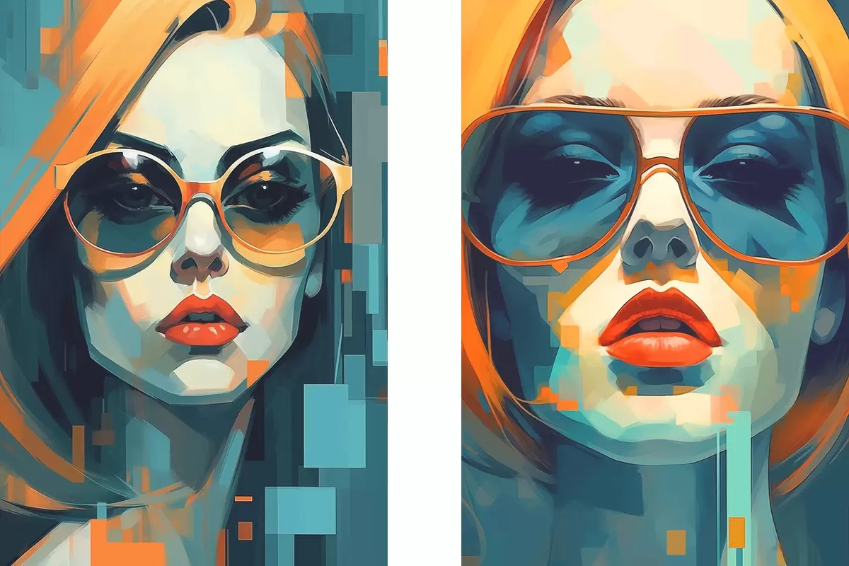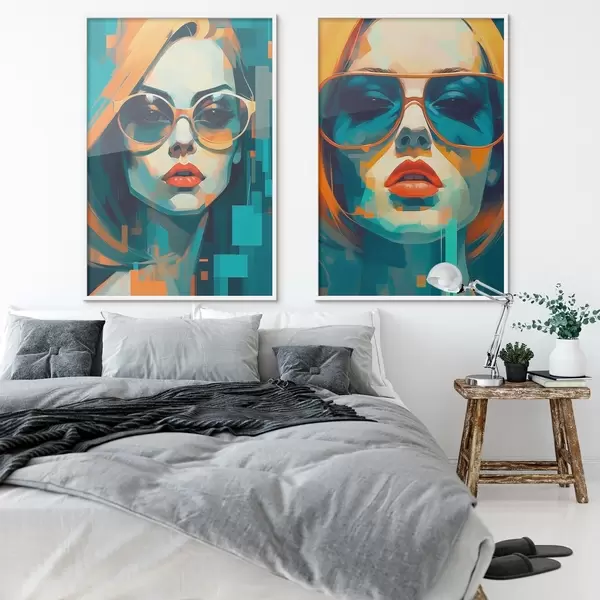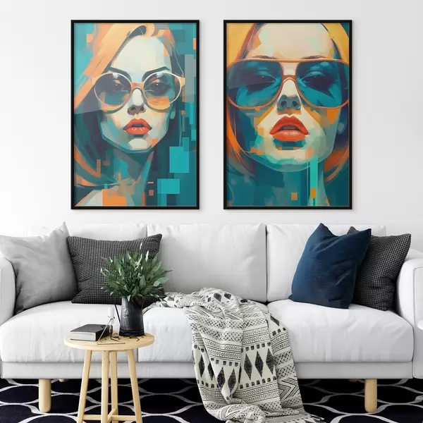 Poster Ritratti femminili con occhiali nello stile dell'astrazione digitale d00587