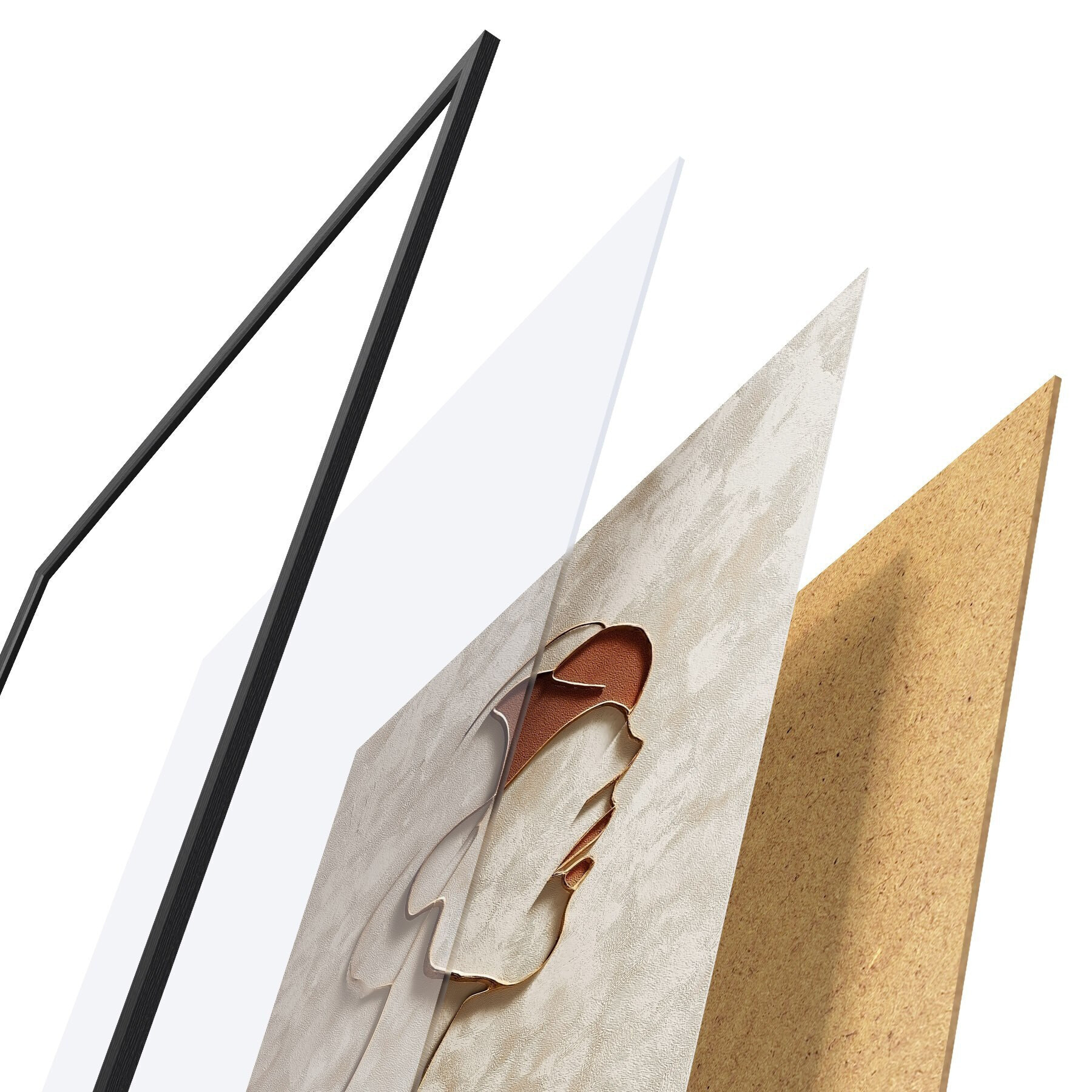 Il poster è composto da cornice, plexiglass, immagine stampata e supporto in truciolato. Il poster può essere immediatamente appeso alla parete grazie ai supporti sul retro.
