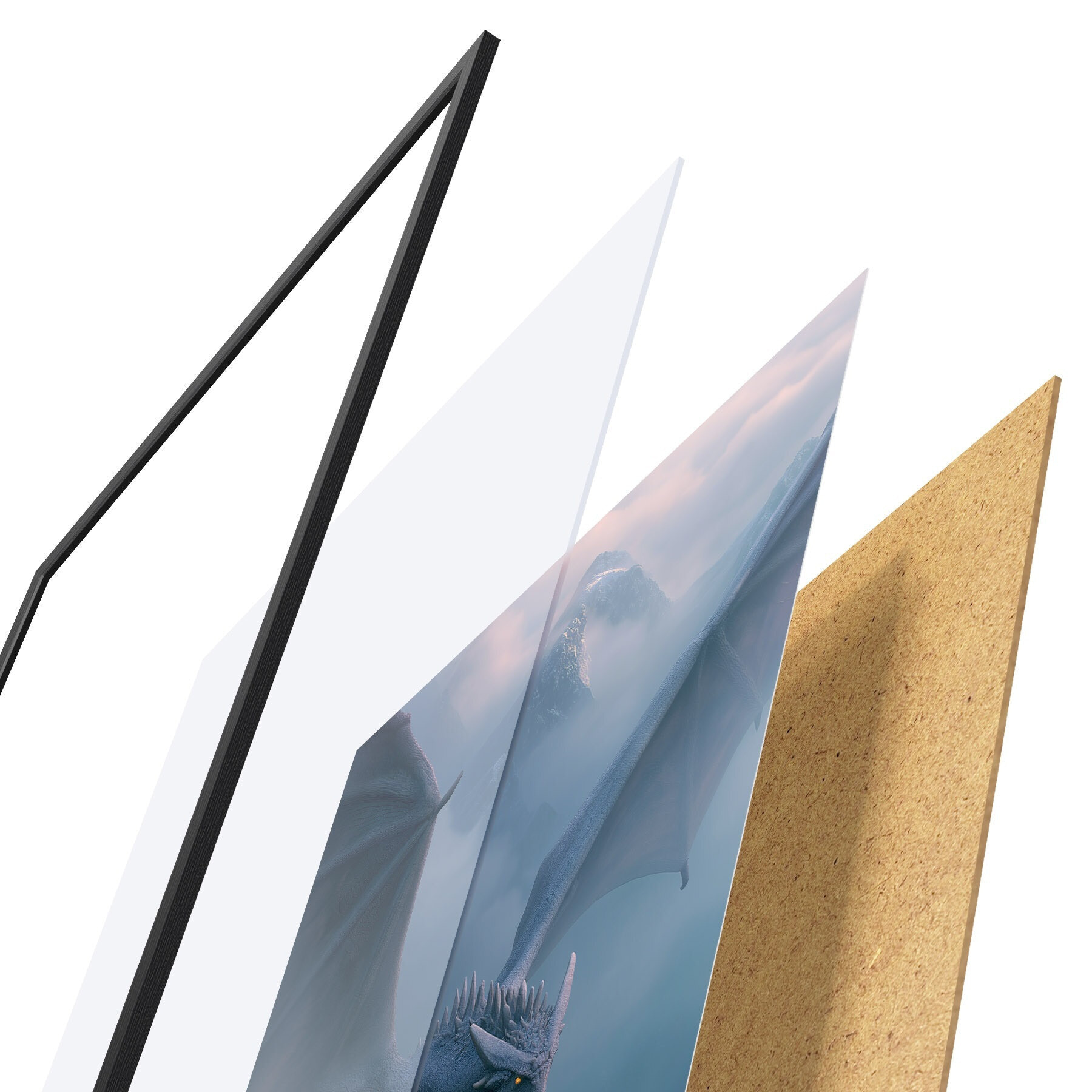 Il poster è composto da cornice, plexiglass, immagine stampata e supporto in truciolato. Il poster può essere immediatamente appeso alla parete grazie ai supporti sul retro.