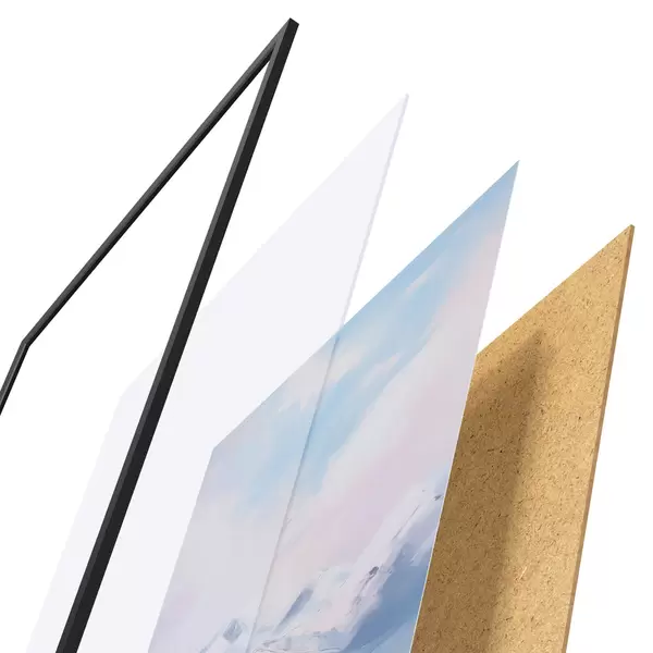 Il poster è composto da cornice, plexiglass, immagine stampata e supporto in truciolato. Il poster può essere immediatamente appeso alla parete grazie ai supporti sul retro.