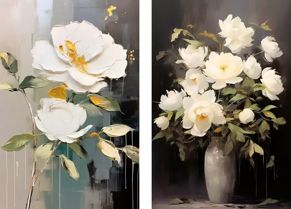 Poster Peonie bianche su sfondo scuro: composizione decorativa d00634