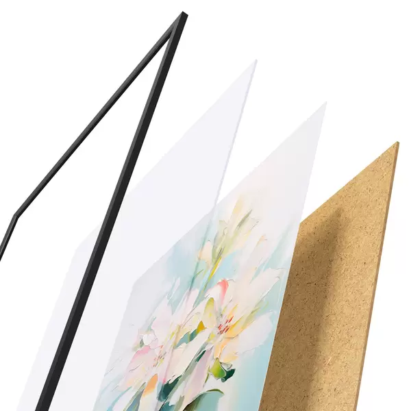 Il poster è composto da cornice, plexiglass, immagine stampata e supporto in truciolato. Il poster può essere immediatamente appeso alla parete grazie ai supporti sul retro.