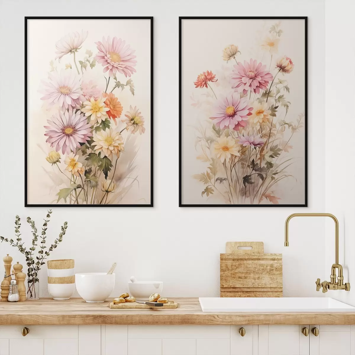 Poster Un bouquet di fiori colorati, stile acquerello morbido, su uno sfondo chiaro, illustrazione botanica Nr d00649