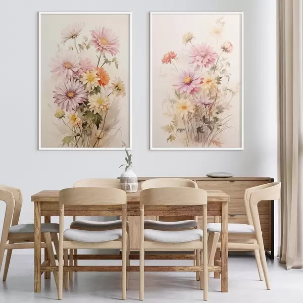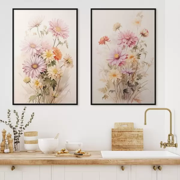 Poster Un bouquet di fiori colorati, stile acquerello morbido, su uno sfondo chiaro, illustrazione botanica d00649